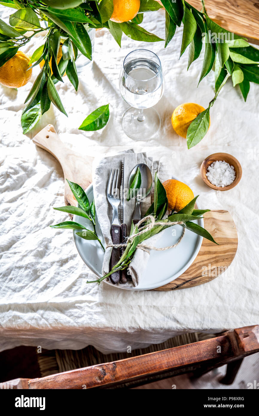 Table Avec Plaque Blanche Couverts Linge De Maison Serviette